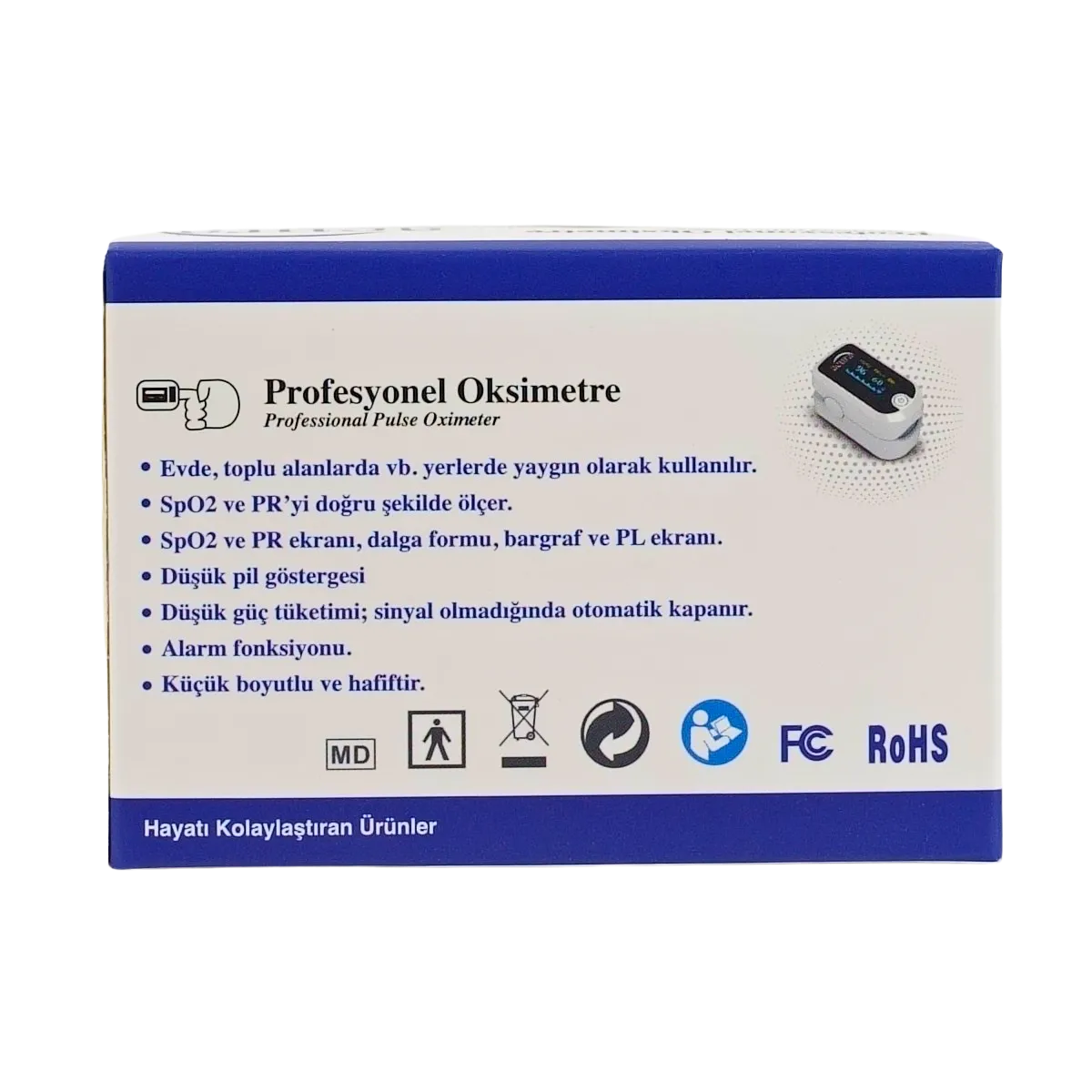 Kandaki oksijen doygunluk seviyesini (SpO₂) ve nabız hızını non-invaziv yöntemle hızlı, güvenilir ve pratik şekilde ölçmek amacıyla geliştirilmiş taşınabilir medikal ölçüm cihazıdır. Parmak ucundan yapılan ölçüm sayesinde hastane, klinik ve ev ortamında anlık solunum ve dolaşım takibi yapılmasına olanak sağlar.