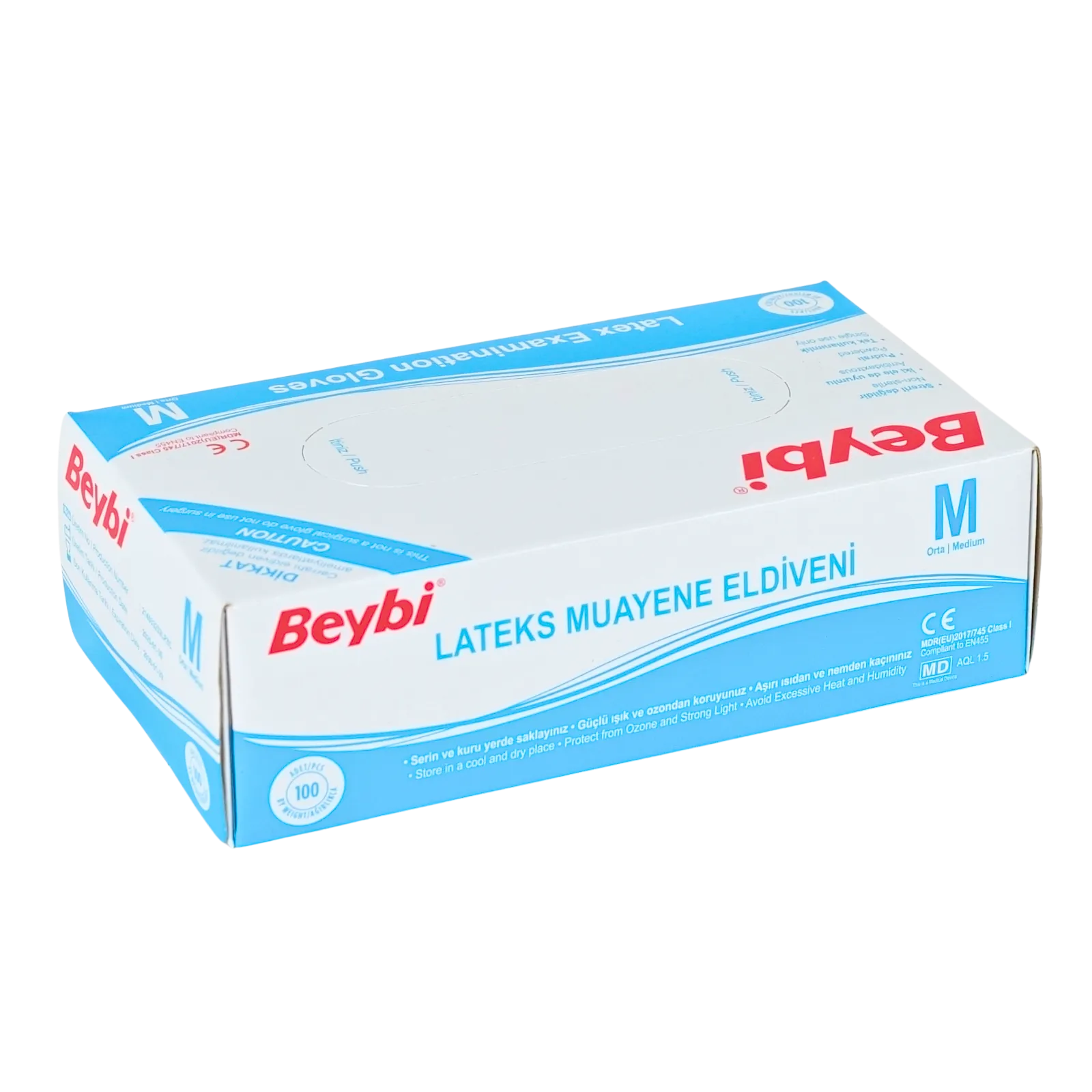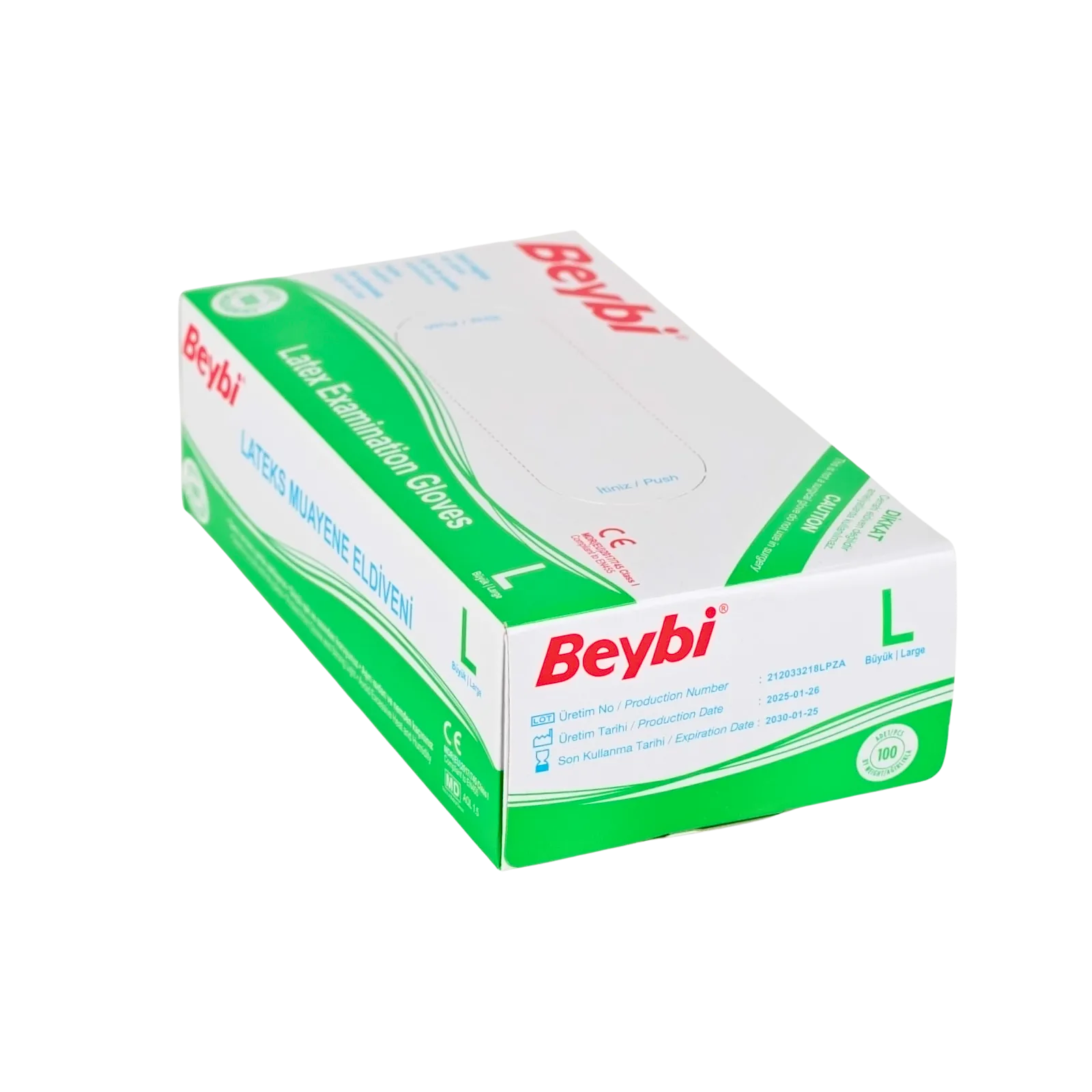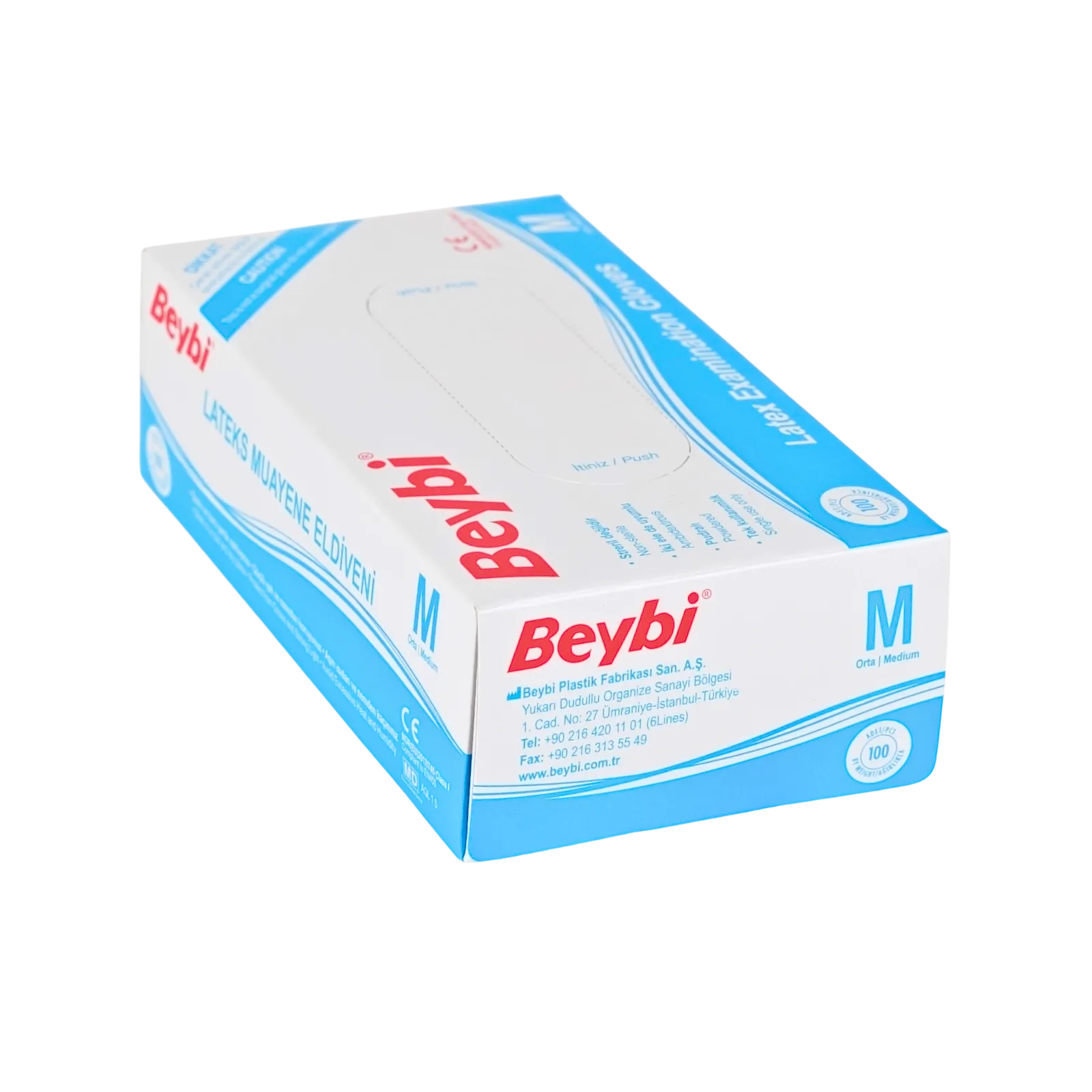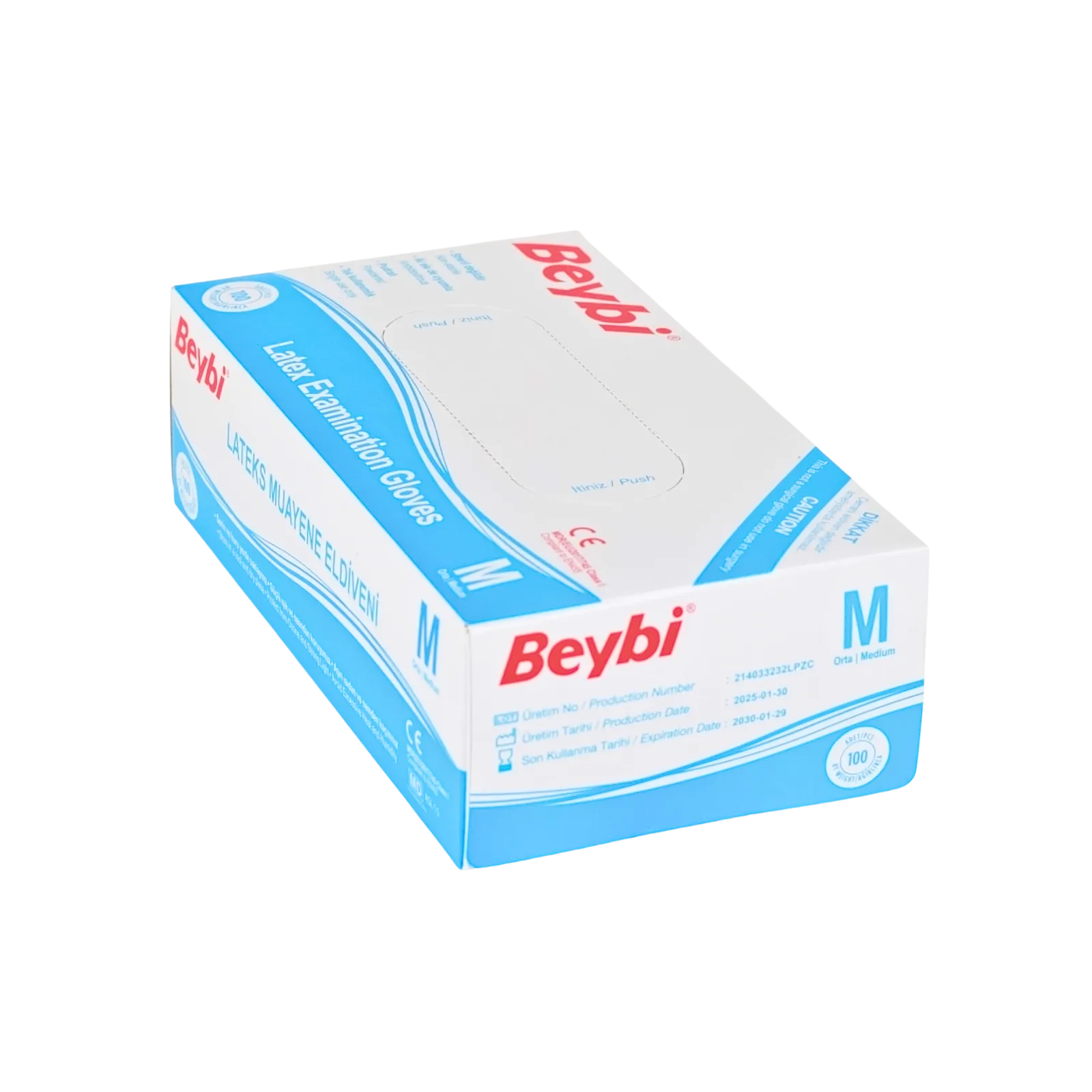 BEYBI Pudralı Lateks Muayene Eldiveni – 100’lük Kutu