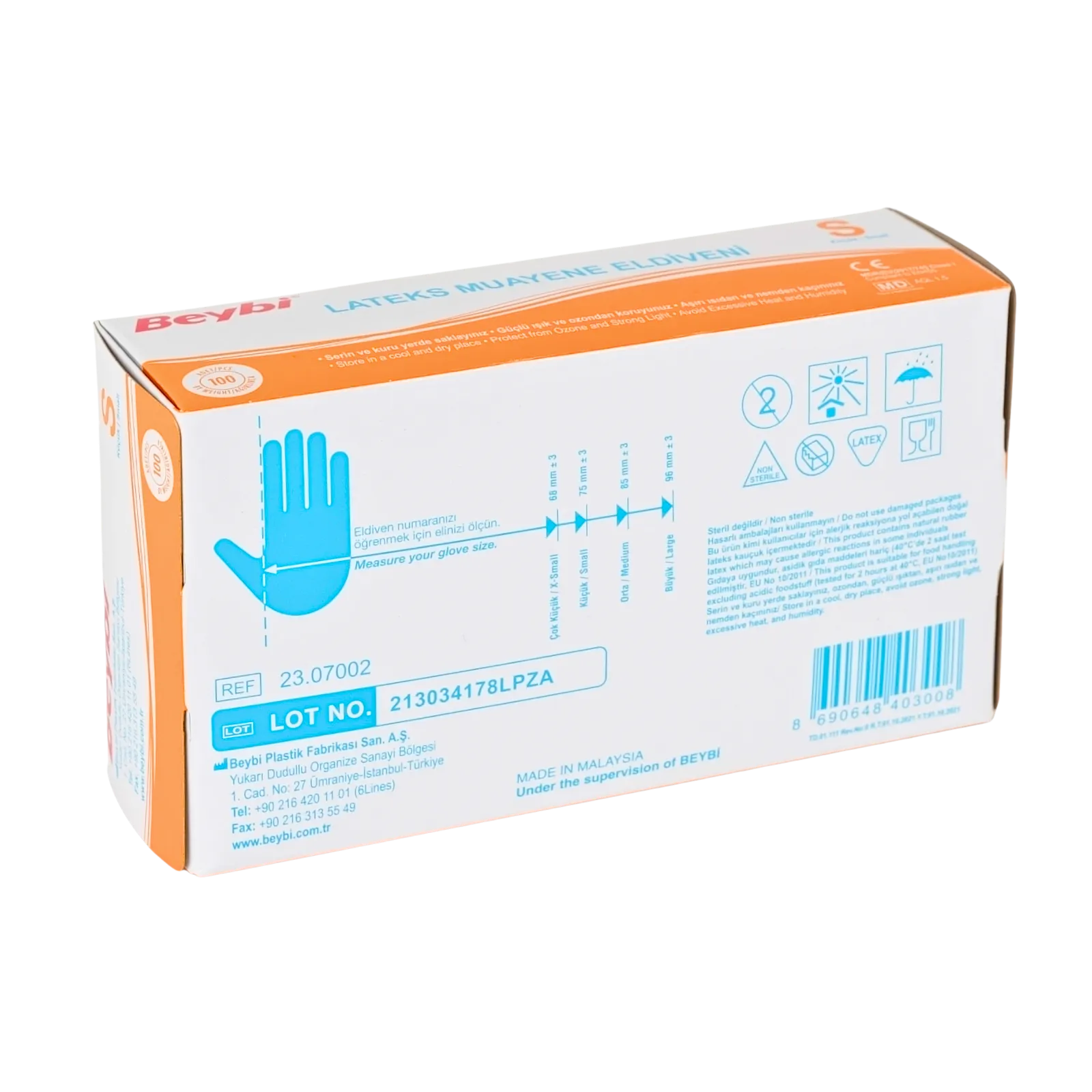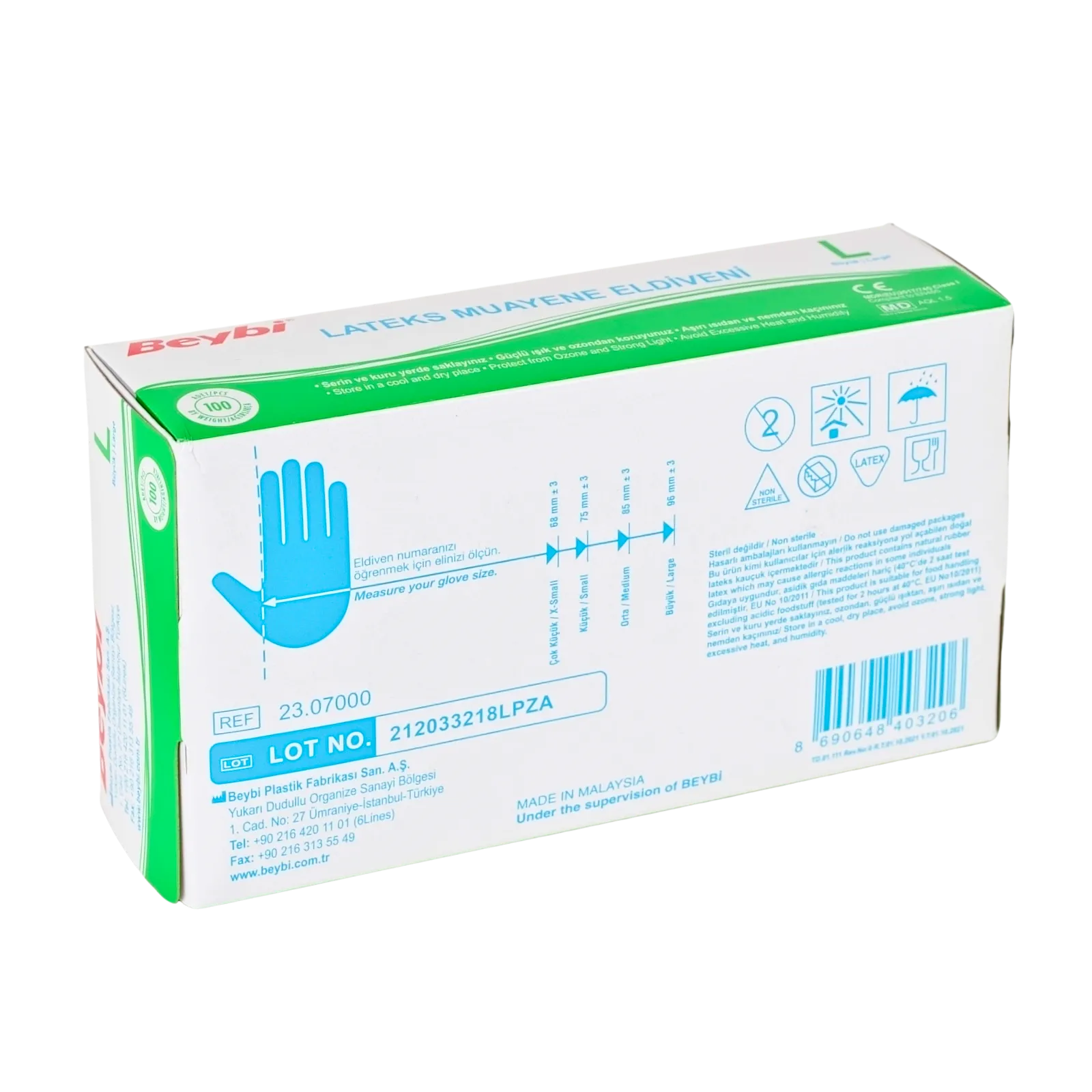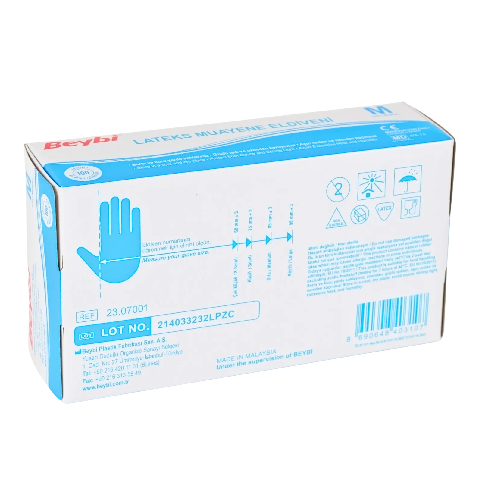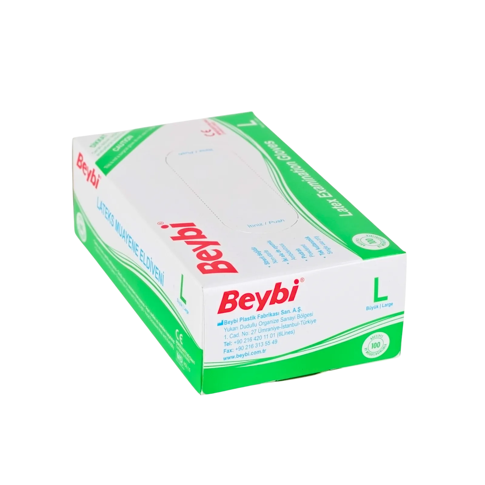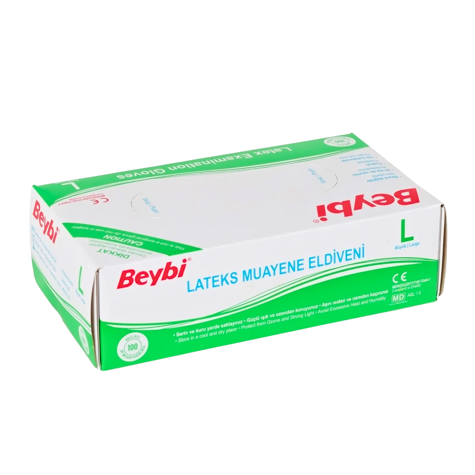 BEYBI Pudralı Lateks Muayene Eldiveni – 100’lük Kutu