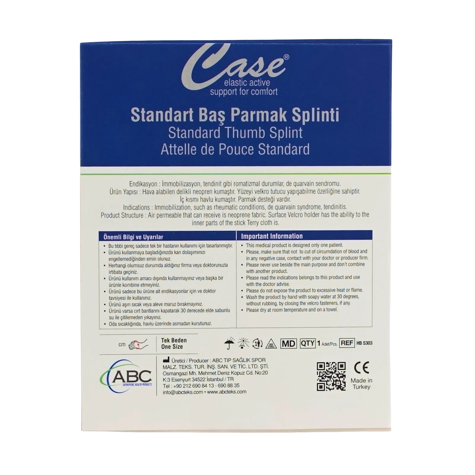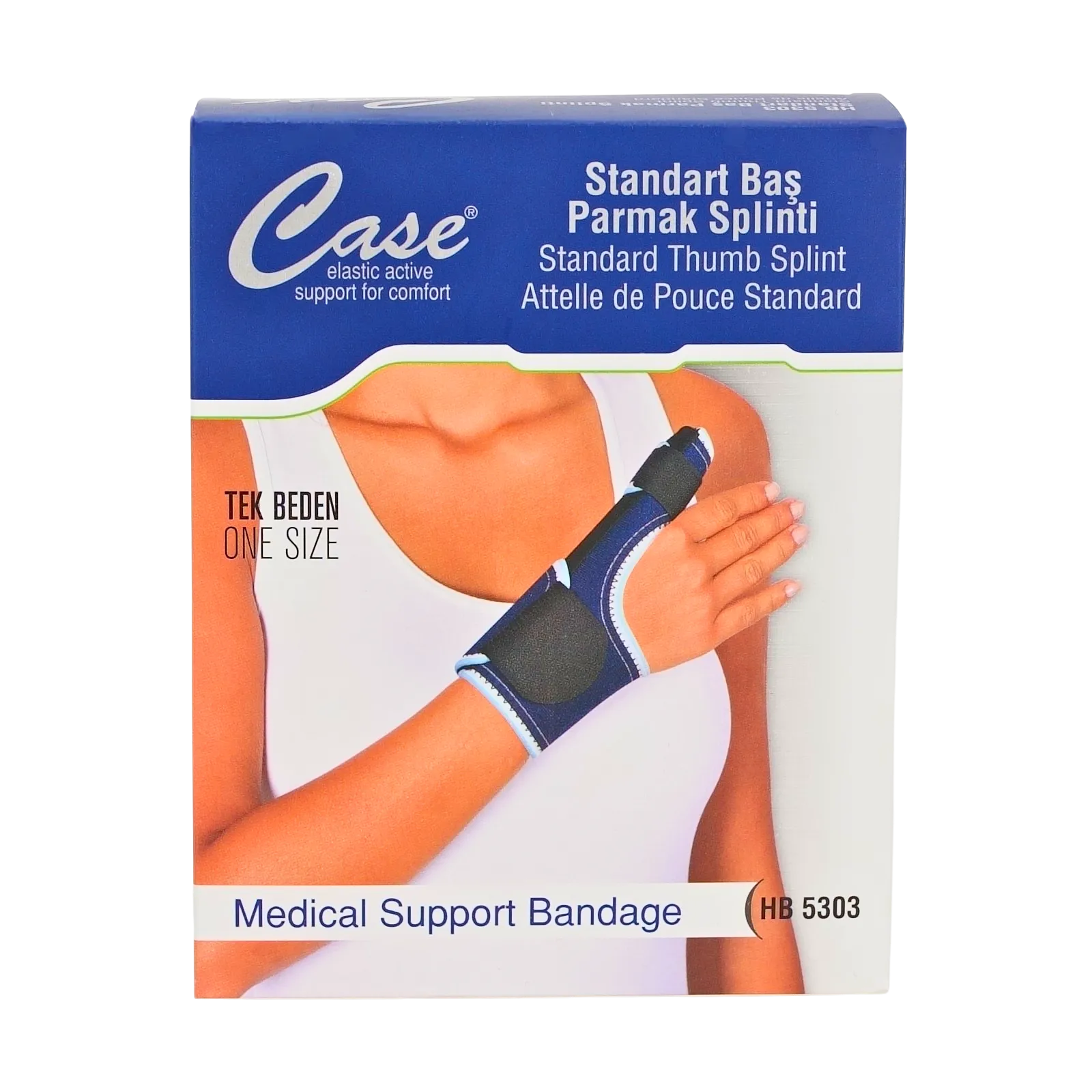 CASE Başparmak Tespit Ateli Standart (HB5303), başparmak ekleminde oluşan zorlanma ve yaralanmalarda destek sağlayarak günlük yaşam konforunu artırmaya yardımcı olan güvenilir bir ortopedik destek ürünüdür.