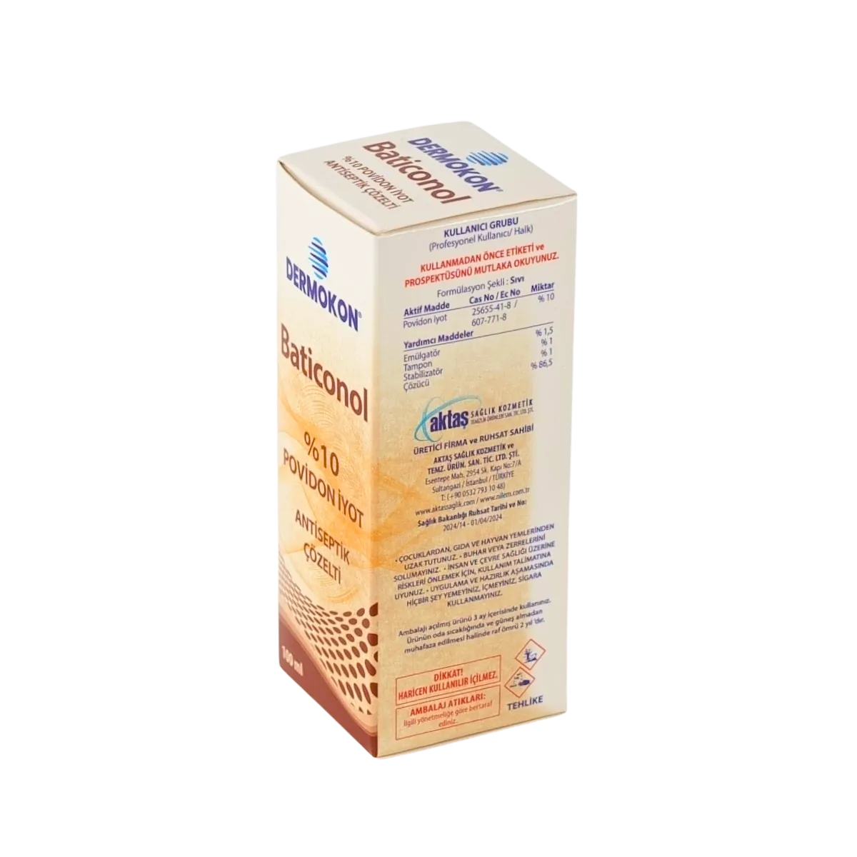 %10 povidon iyot antiseptik çözelti. İçeriğindeki povidon-iyot, cilt ve yara yüzeylerini dezenfekte ederek bakteri, mantar ve bazı virüslere karşı geniş spektrumlu antiseptik etki sağlar, yaraların çevresinin temizlenmesinde antiseptik olarak kullanılır. Yara çevresini kapatacak kadar kullanılmalıdır. Uygulama alanı çevresine bir bez yardımı ya da direk sürülerek uygulanır. Küçük kesik, sıyrık ve yanık gibi yüzeysel yaralarda kullanıma uygundur; hastanelerde de yara bakımında veya cerrahi hazırlık aşamalarında yaygın olarak tercih edilir. Profesyonel ve genel kullanıma uygundur.
