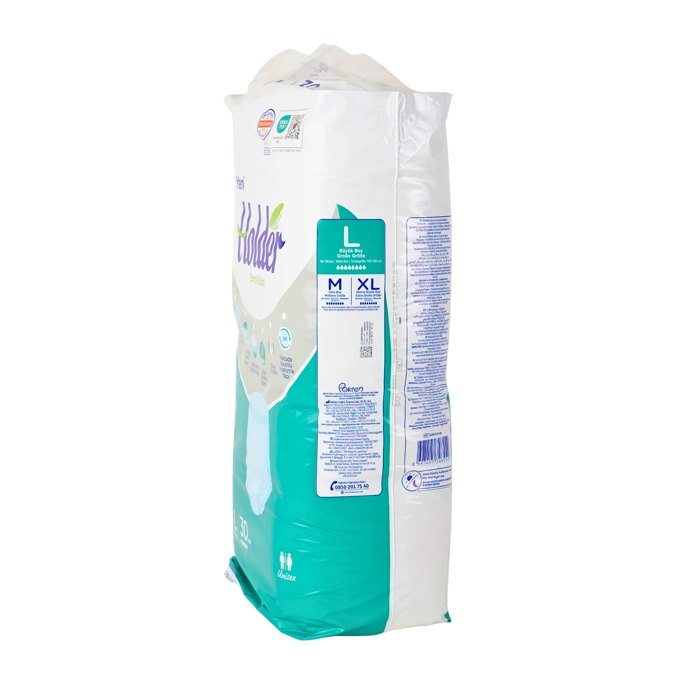 Türkiye’nin ilk ve tek “Oeko-Tex” belgeli yetişkin bezi. Koku, sızdırmazlık, kuruluk ve incelik konularında %100’e kadar güven verir. Yüksek kalite ve performans ile üstün bakım sağlar.