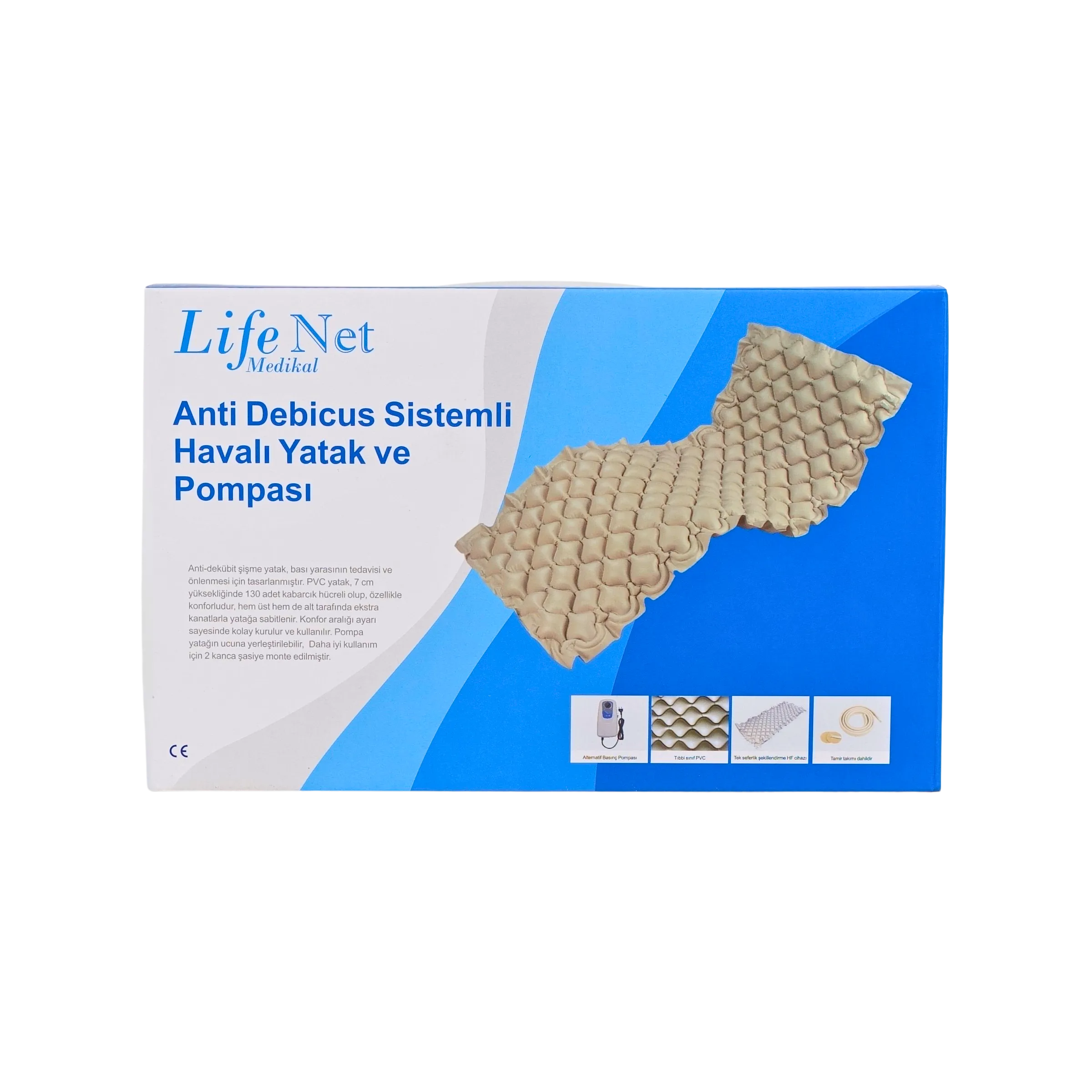 Life Net Baklava Tipi Havalı Yatak, bası yarası riskinin azaltılmasına yardımcı olan, konfor ve dolaşım desteğini bir arada sunan güvenilir bir medikal destek sistemidir. Uzun süreli yatış gerektiren hastalar için profesyonel bakımın önemli bir tamamlayıcısıdır.
