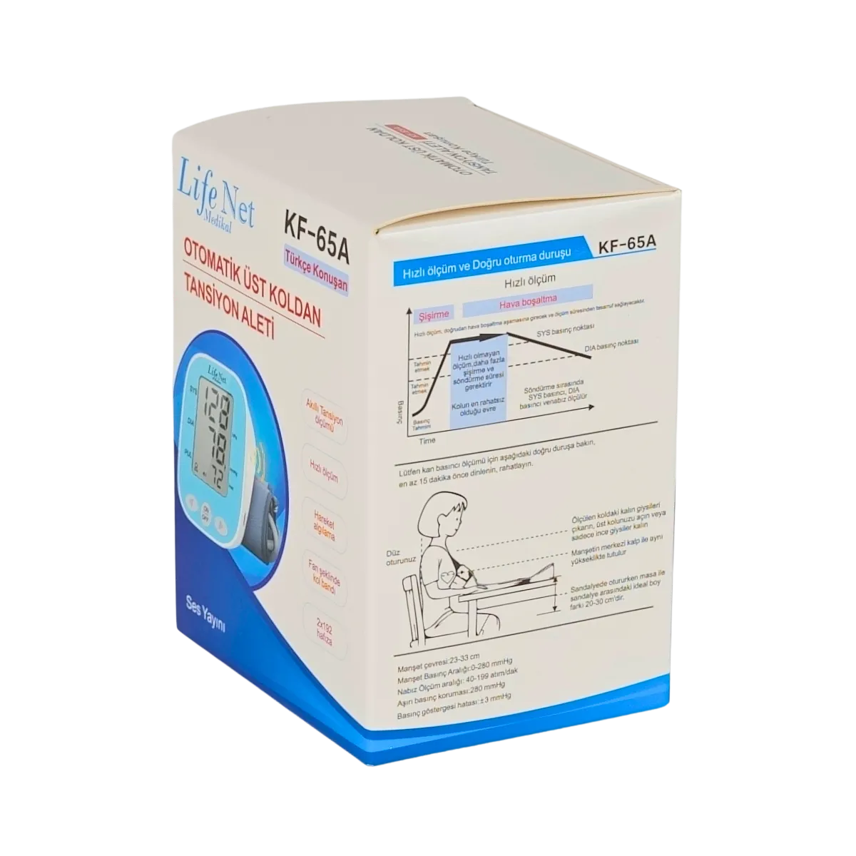 LIFE NET KF-65A-KON Konuşan Tansiyon Aleti, tansiyon ölçümünü kolay ve anlaşılır hale getiren kullanıcı dostu bir sağlık takip cihazıdır. Sesli bildirim özelliği sayesinde ölçüm sonuçlarını okumakta zorlanan kullanıcılar için büyük kolaylık sağlar.