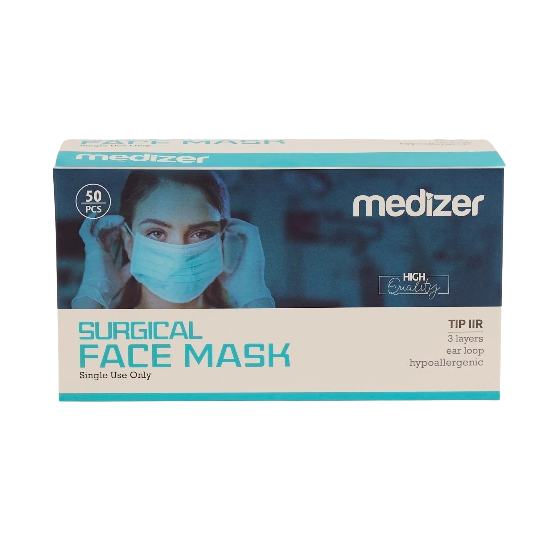 MEDIZER cerrahi maske, hijyenik koşullarda üretilmiş olup tek kullanımlık tasarımı sayesinde günlük kullanımda pratik bir koruma sağlar. 50 adetlik kutu içeriği ile bireysel kullanımın yanı sıra sağlık kurumları ve iş yerleri için ekonomik bir çözüm sunar.