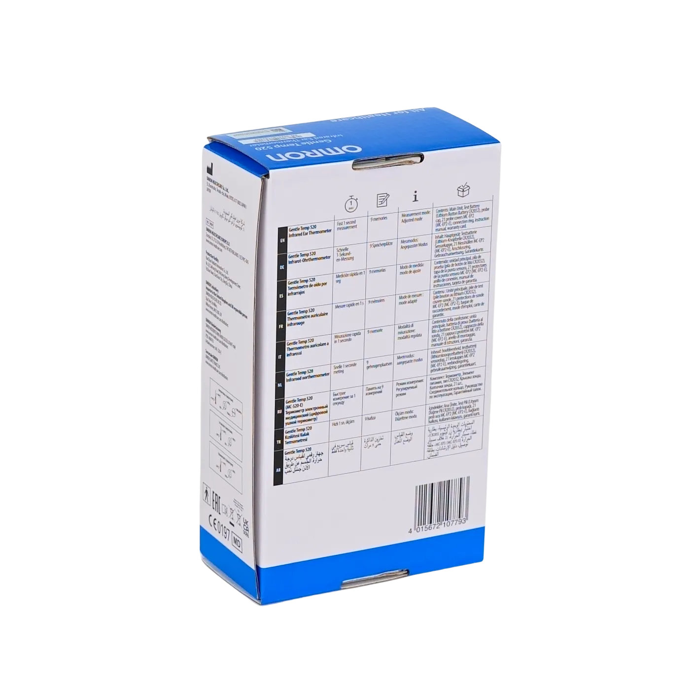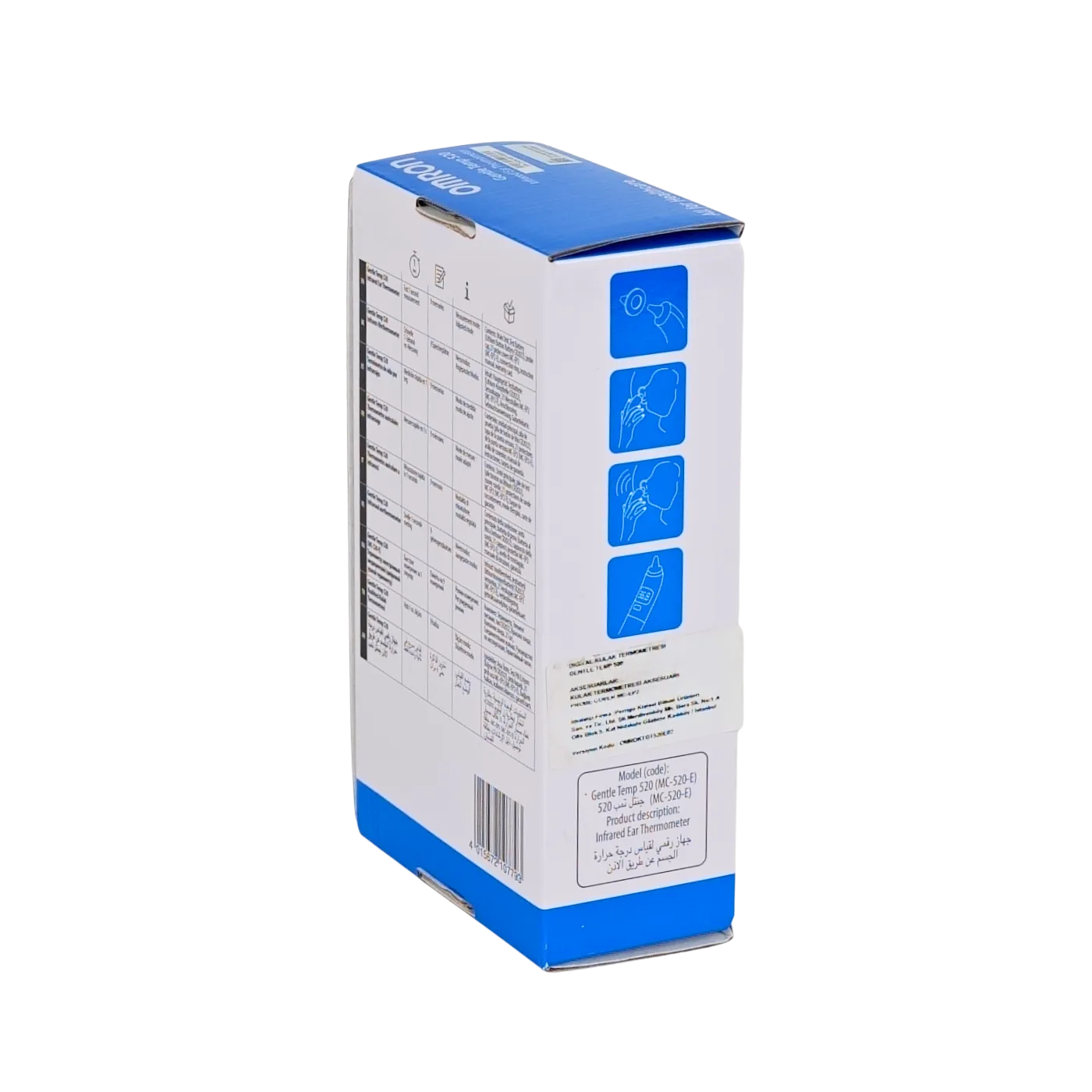Gentle Temp 520 kulak termometresi, üst düzeyde doğruluk sağlayan Gentle Temp 521 teknolojisinin aynısını kullanmakta olup, bir saniyelik ölçüm ve belirli bir zaman diliminde sıcaklık değişimlerini takip etmeye ve eğilimleri izlemeye yarayan en çok dokuz okuma hafızası da dahil olmak üzere gelişmiş özelliklerinden bazılarını içerir. Ayrıca, 21 prob kapağıyla birlikte elinize ulaşır. Sıcaklıklar büyük LCD’de ekranda gerek Santigrat derece gerekse Fahrenhayt derece olarak görüntülenebilir.