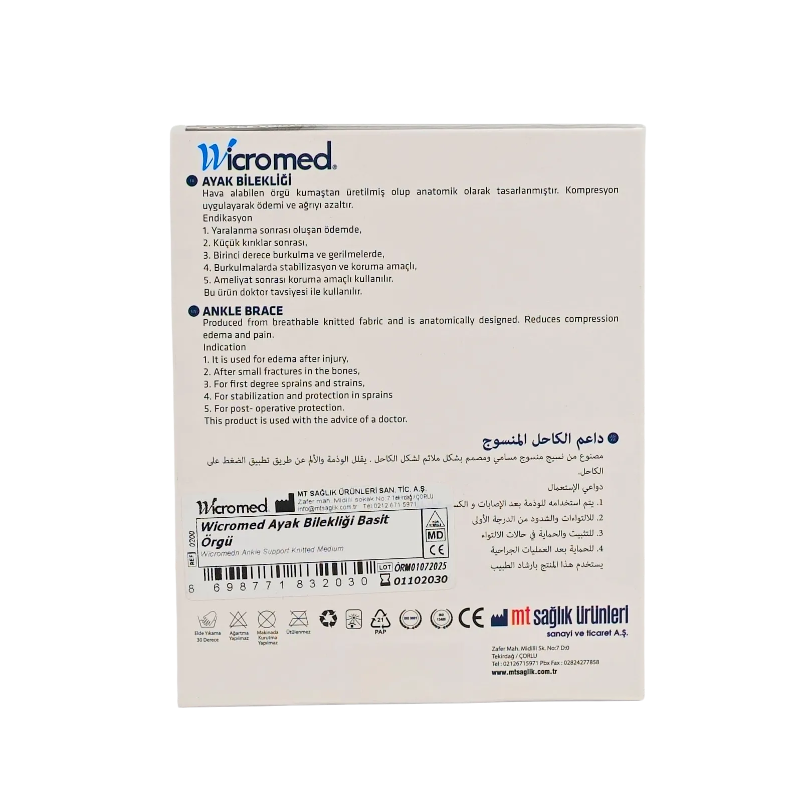 WICROMED Ayak Bilekliği Basit Örgü, hafif ayak bileği problemlerinde destekleyici tedavi amacıyla tasarlanmış, konforlu ve pratik bir ortopedik çözümdür. Günlük yaşam ve spor aktivitelerinde eklem güvenliğini artırmaya yardımcı olur.