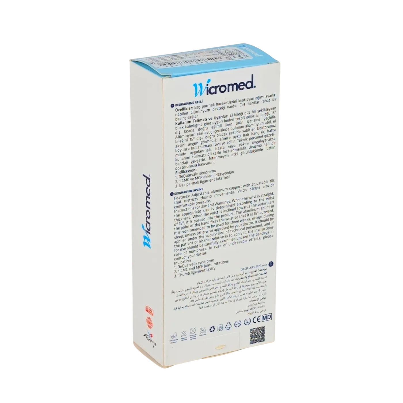 WICROMED Dequarvein Ateli Plus, başparmak ve el bileği bölgesinde oluşan zorlanma ve tendon problemlerinde stabilizasyon sağlayarak ağrının azaltılmasına yardımcı olabilecek ortopedik bir destek ürünüdür. Başparmağı sabitleyen splint yapısı sayesinde hareketi kontrollü şekilde sınırlandırarak tendonların dinlenmesine katkı sağlar.