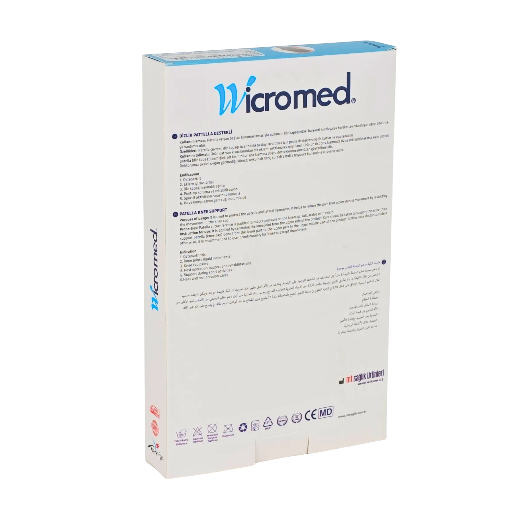 WICROMED Patella Dizlik Basic, diz kapağı bölgesine destek sağlayarak diz ekleminin stabilitesine katkı sunar. Hafif kompresyon sağlayan yapısı sayesinde diz çevresindeki kas ve bağ dokularının desteklenmesine yardımcı olabilir.