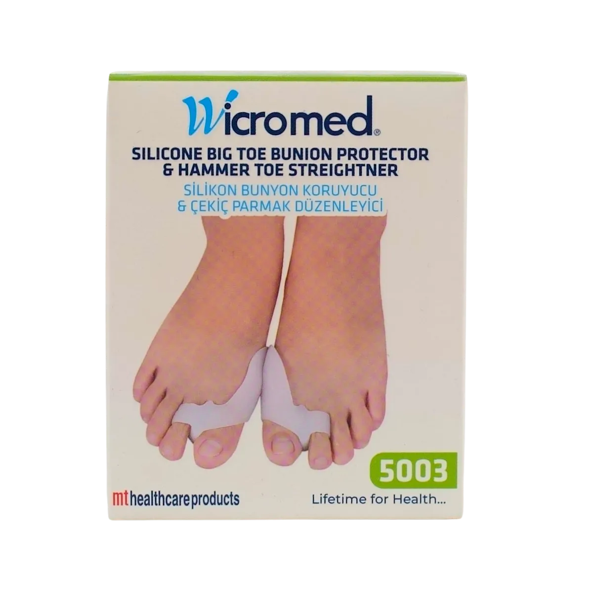WICROMED Silikon Bünyon Koruyucu & Çekiç Parmak 5003 (Standart), halluks valgus ve çekiç parmak deformitelerinde basınç kontrolü ve konfor sağlamak amacıyla geliştirilmiş, çift etkili ve hijyenik bir ortopedik destek çözümüdür. Günlük yaşamda ağrıyı azaltmaya yardımcı olurken ayak sağlığının korunmasına katkı sağlar.