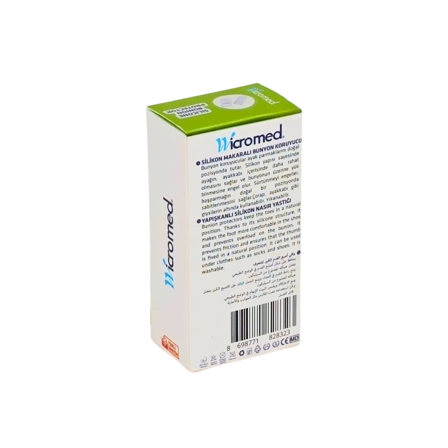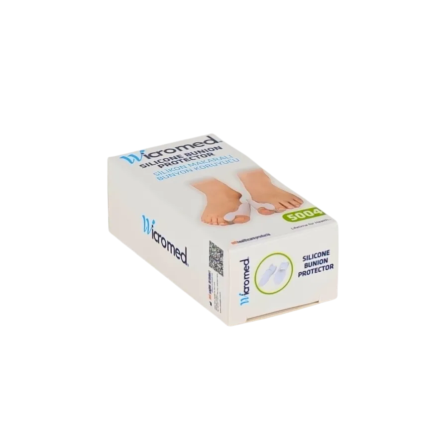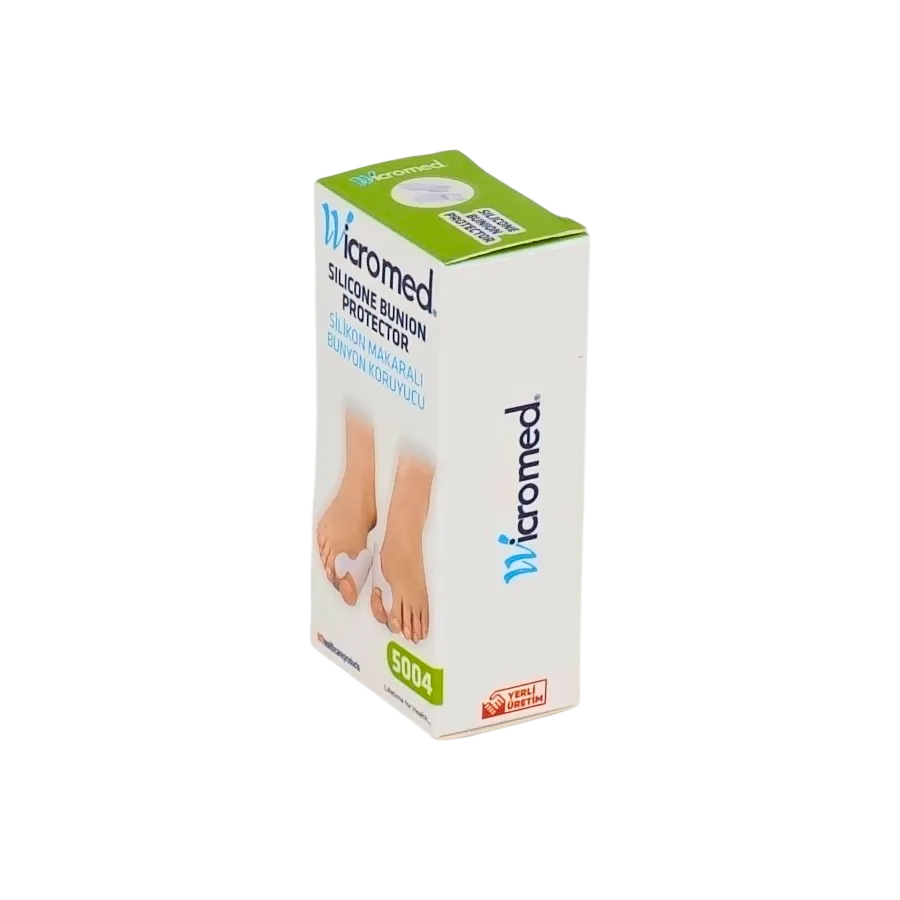 WICROMED Silikon Makaralı Bunyon Koruyucu 5004 (Standart), halluks valgus deformitesinde hem basınç kontrolü hem de parmak hizalama desteği sunan, konfor odaklı ve hijyenik bir ortopedik çözümdür. Günlük yaşamda ağrıyı azaltmaya yardımcı olurken ayak sağlığının korunmasına katkı sağlar.