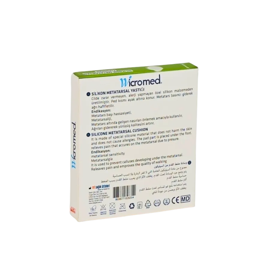 Cilde zarar vermeyen, alerji yapmayan özel silikon malzemeden üretilmiştir. Ped kısmı ayak altına konur. Metatars basıncı giderek ağrı hafifletir. Metaters kaynaklı ağrıları gidererek yürüyüş kalitesini arttırır.