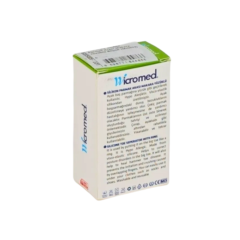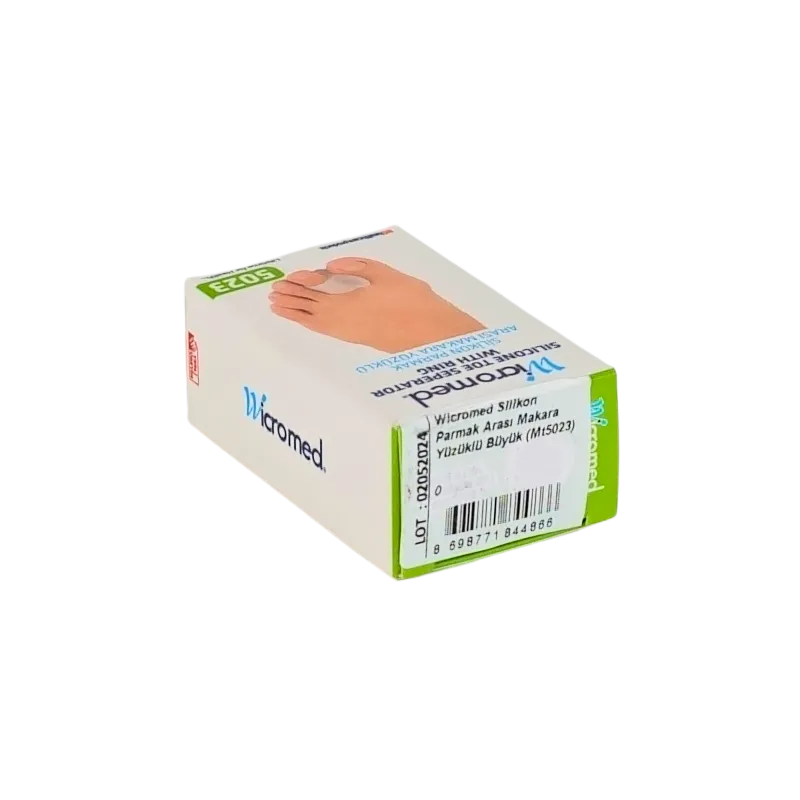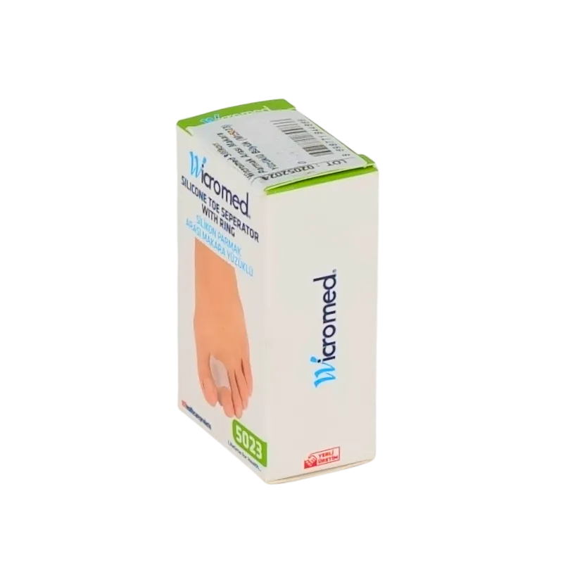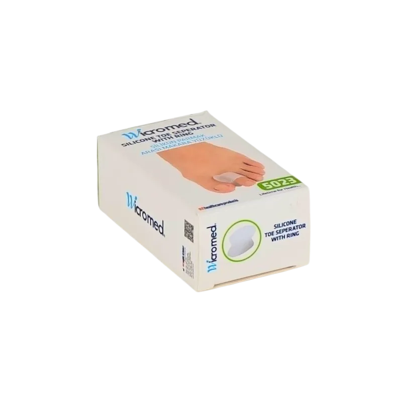 WICROMED Silikon Parmak Arası Makara Yüzüklü 5023, parmak arası basınç ve sürtünmeye karşı etkili koruma sağlayan, stabil kullanım avantajı sunan ve ayak sağlığını destekleyen fonksiyonel bir ortopedik çözümdür.