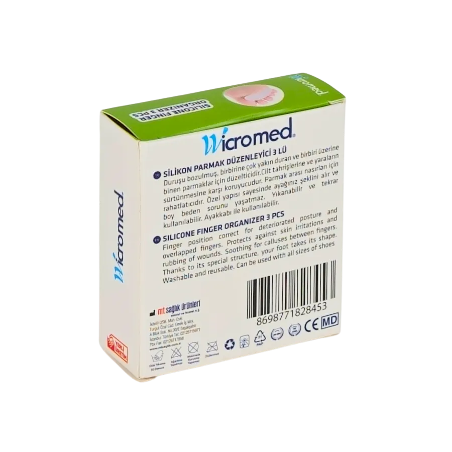 WICROMED Silikon Parmak Düzenleyici 3’lü 5017 (Standart), ön ayakta çoklu parmak hizalama desteği sunan, basınç kontrolüne yardımcı ve konfor odaklı bir ortopedik çözümdür. Günlük yaşamda sürtünme ve tahrişi azaltarak ayak sağlığının korunmasına katkı sağlar.